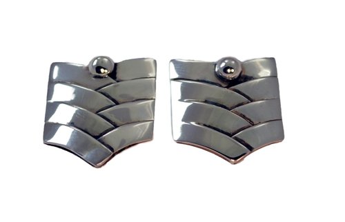 Beautiful sterling silver woven arrows topped with a half sphere make a classy statement earring to add to your collection.