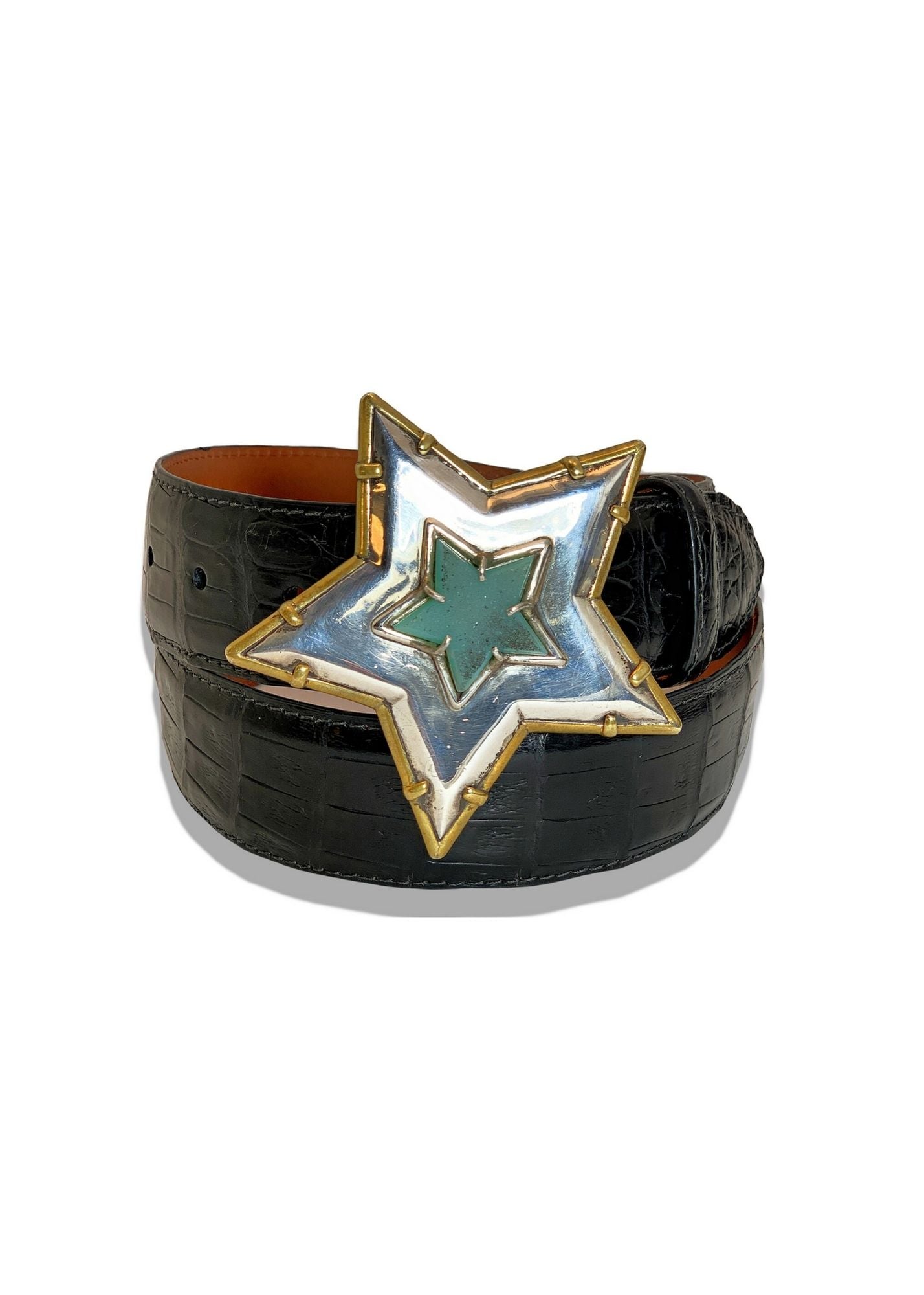 Pat Arieas Five-Point Star Sterling Sivler Buckle with Turquoise M498