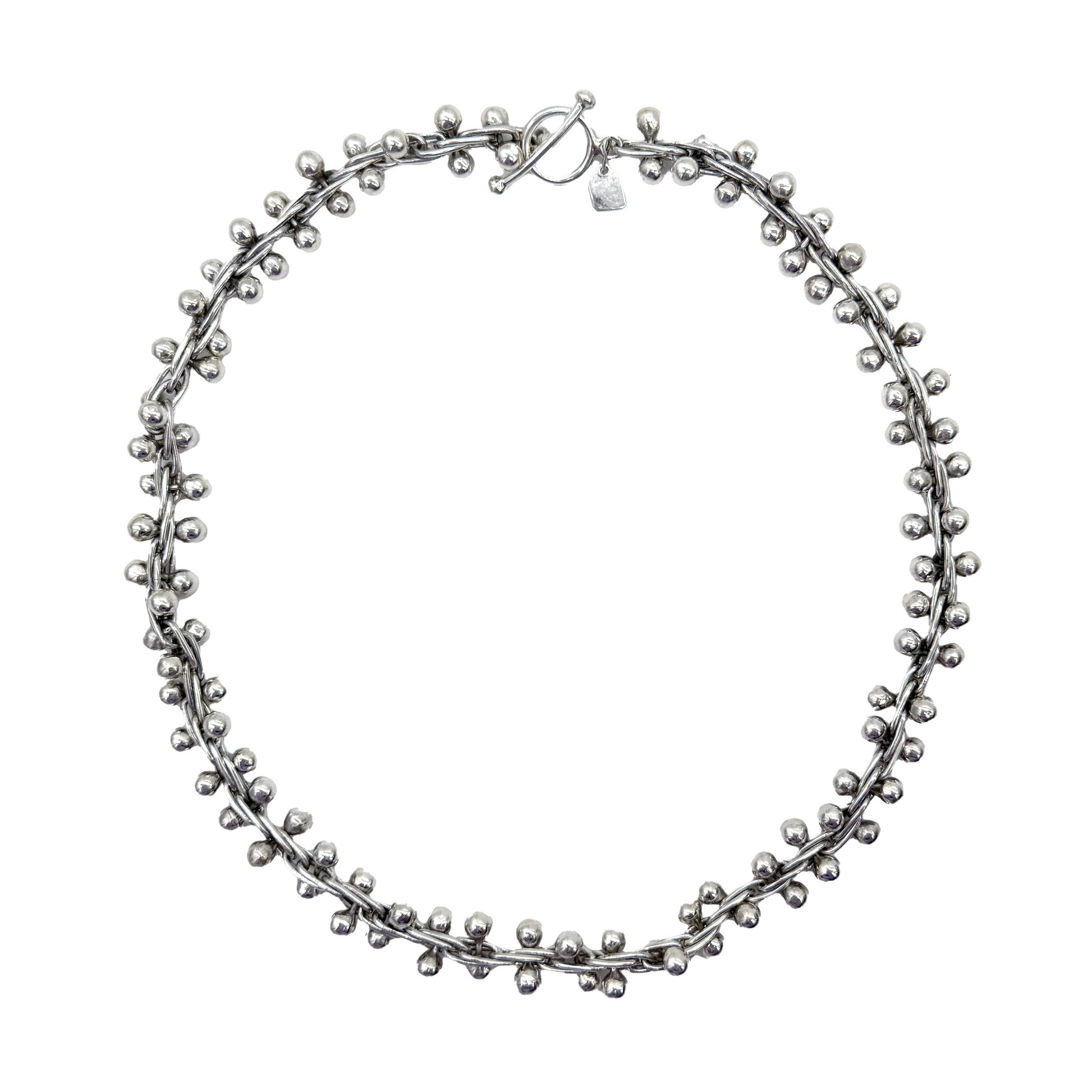 Our signature necklace consists of multi oval links intersected by 5mm sterling beads. This creates a very unique link that can easily be worn as an everyday necklace or a statement piece on a lovely evening dress. Beautiful in all sterling or alternating with pearls.