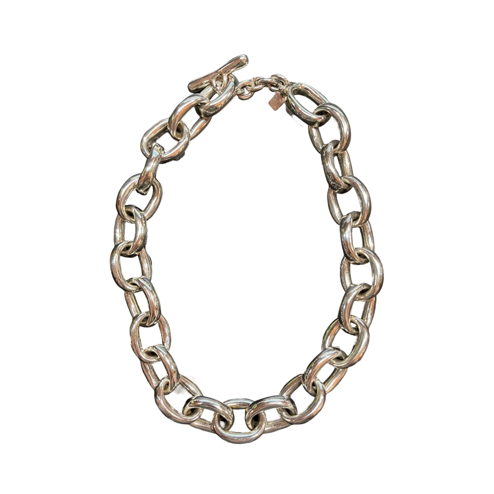 The Pat Areias Classic Oval Link Necklace is timeless. Hand forged in sterling silver these hollow links come in two options , Hammered or Smooth Polished. This lightweight beauty is comfortable and incredibly easy to wear. From tee-shirts to evening wear--always a standout.